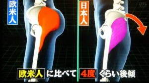 筋肉にも差があり日本人は前面の筋肉が発達しやすく、欧米人は背面の筋肉が発達しやすいのですらっとして見えます。