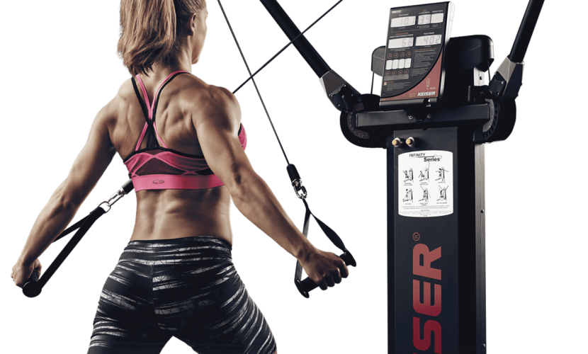 カイザーは一般的なマシンと違って空気圧で負荷設定を行うことから、動きの中で負荷が逃げる局面が少ないのが特徴です!